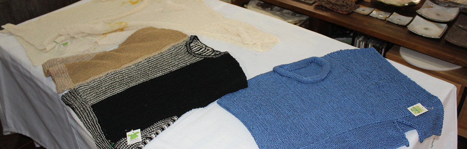 陶芸作品や、北平淑子のテキスタイル作品の販売をしています。